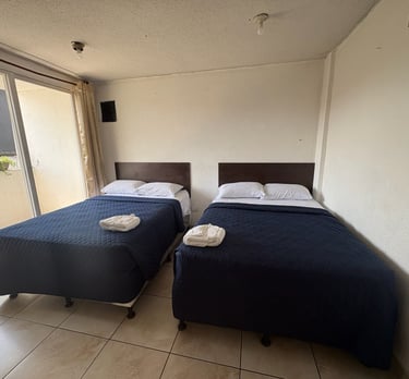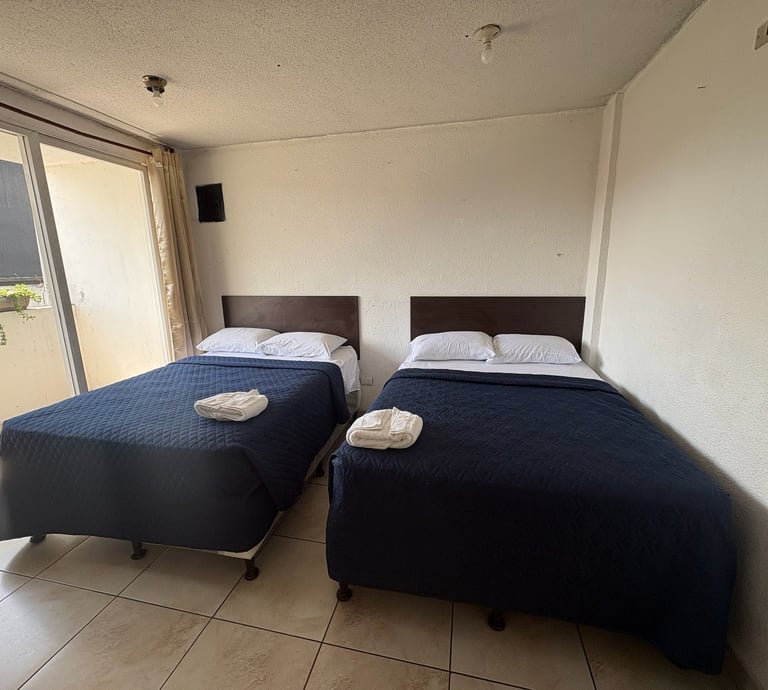 Cuenta con dos camas matrimoniales, ideal para garantizar un descanso placentero en un ambiente confortable y ventilado.