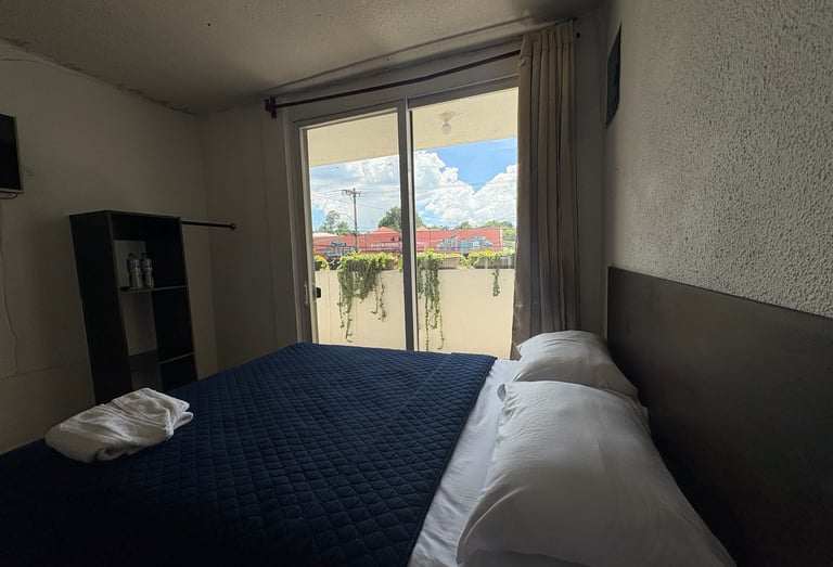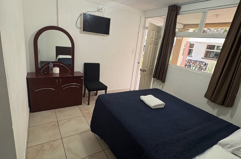 Equipada con una cama matrimonial, esta habitación ofrece el espacio ideal para una persona o pareja que desea disfrutar de una estancia cómoda.